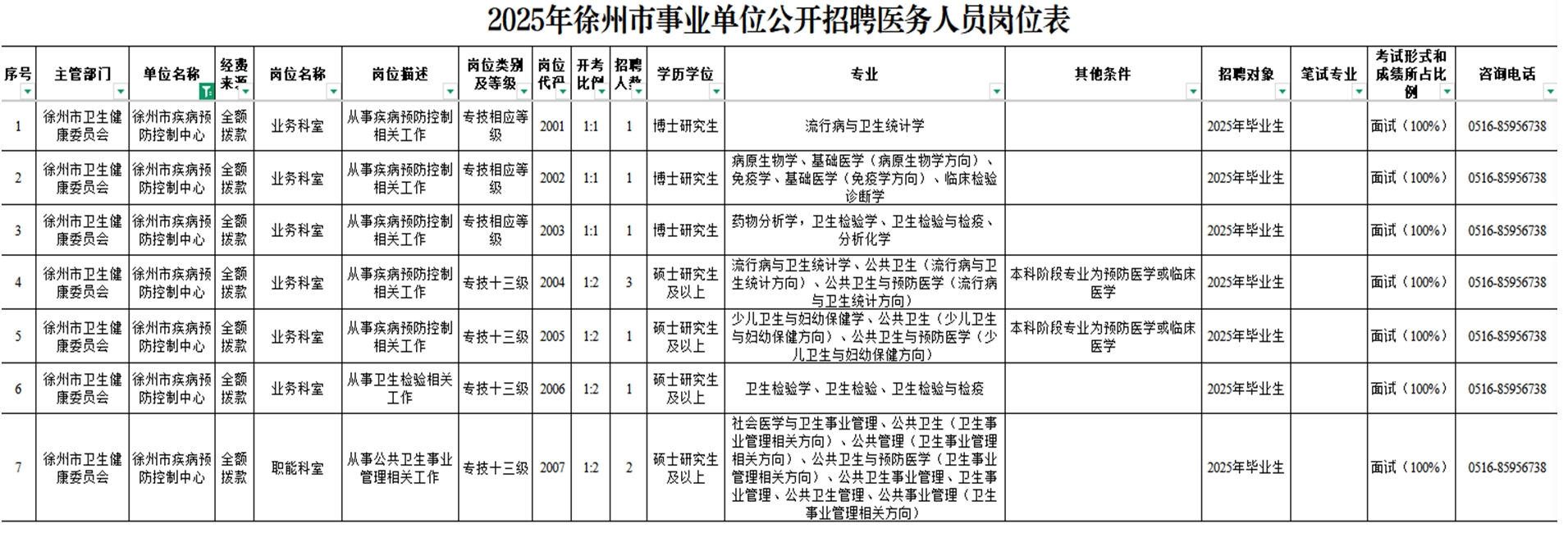 1. 2025年徐州市事业单位公开招聘医务人员岗位表