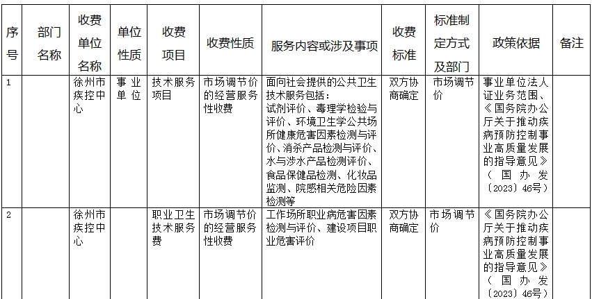 徐州市疾病预防控制中心综合性涉企收费和对外服务目录清单-大发app下载地址