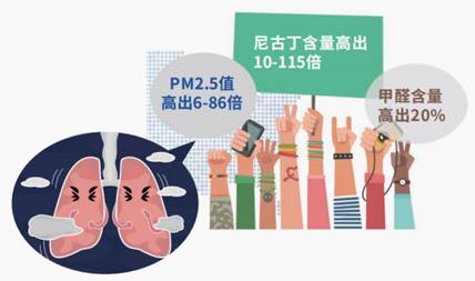 √真相:电子烟的本质仍是一种尼古丁电子传送系统,是一头“披着羊皮的狼”。长期使用可导致尼古丁依赖。