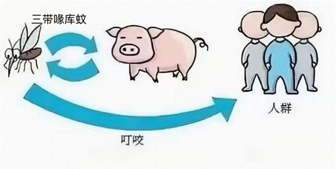 传染源和宿主:主要传染源是携带病毒的猪、牛、马、羊、鸡、鸭、鹅等动物。病毒通过蚊子在动物-蚊-动物中形成自然循环,其间带毒蚊子叮咬人类,则可引起人类感染。