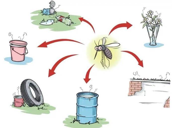 蚊子幼虫主要孳生在水培植物瓶、坛、罐、树洞、竹洞等小型积水容器中,消除蚊虫孳生地首要任务是“清积水”,从根源上“灭蚊虫”。