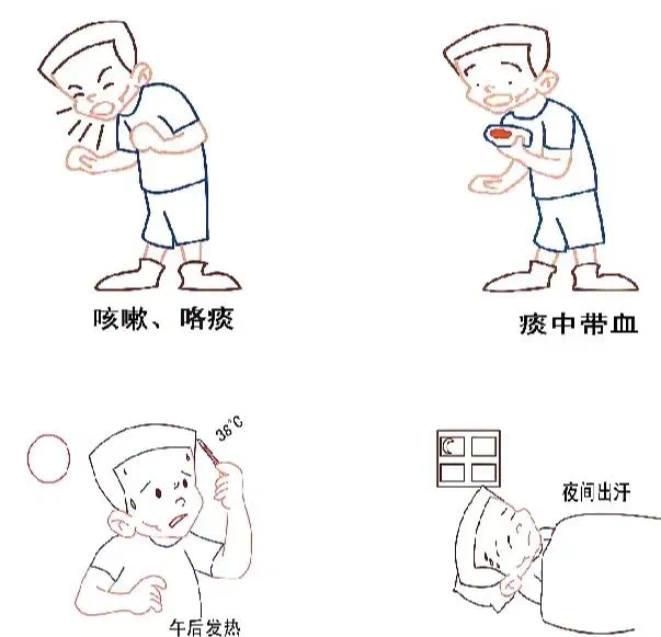 持续咳嗽超2周:普通感冒咳嗽通常1周内缓解,而肺结核患者咳嗽、咳痰常持续2周以上,且可能伴随痰中带血或铁锈色痰。