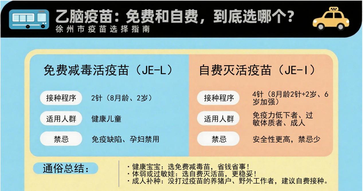 徐州市提供两种乙脑疫苗,就像“公交卡”和“打车”的区别——都能到站,但体验不同!