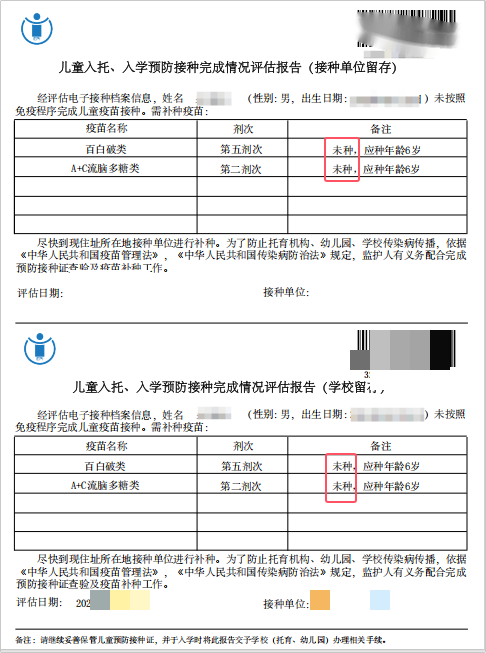 当评估通过下载并打印评估报告,并按要求提交托管机构、幼儿园或学校。如发现评估不通过,查验报告中在“备注”栏看到有显示“未种”表示该疫苗需补种,请及时带儿童至居住地儿童预防接种门诊进行疫苗补种。补种时只需补种未完成的剂次,无需重新开始全程接种。