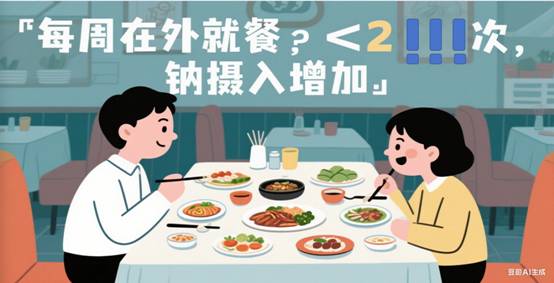 在外就餐也是隐形盐摄入的重要来源。研究表明,每周在外就餐大于两次的人群钠盐摄入量增加[5]。这是因为餐馆和外卖食品为了追求口感和风味,往往会添加大量的盐和调味品来吸引顾客的青睐,而忽视了食物的膳食健康。因此我们建议尽量减少在外就餐和点外卖的次数,尽量自己在家做饭。
