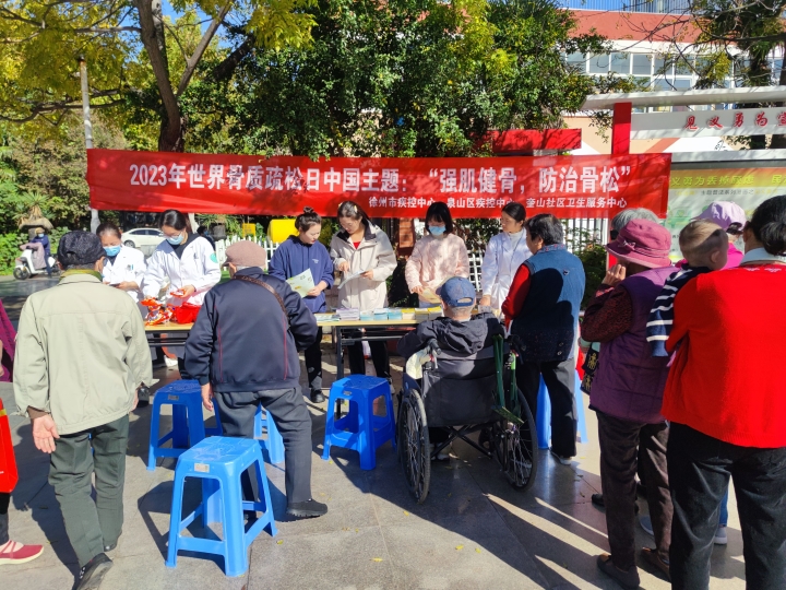 10月20日是世界骨质疏松日,今年世界骨质疏松日中国主题为“强肌健骨,防治骨松”。为了唤起居民对骨骼健康的重视,提高公众对骨质疏松症的认识,2023年10月20日,徐州市疾控中心联合泉山区疾控中心、奎山社区卫生服务中心在奎山社区小广场举办健康生活方式指导员“进社区”现场宣传活动。