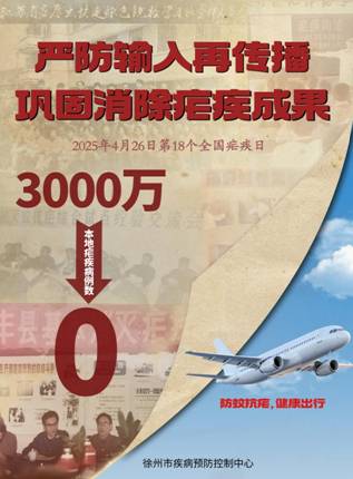 海报彰显我国在消除本土疟疾传染源方面取得的成就,又强调在全球人员往来中保持防控警惕的重要性,呼吁全民共同筑牢输入性疟疾防线,守护来之不易的公共卫生成果。