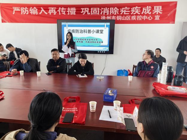市疾控中心、市传染病医院、铜山区疾控中心、三堡镇卫生院及村卫生室开展疟疾防治工作交流,梳理当前疟疾疫情形势,强调医务人员在接诊时落实“多问一句话”(“近一年是否出过国,特别是非洲、东南亚等国家”)工作机制,助力基层医疗卫生机构精准识别与规范处置疟疾病例,对疟疾病人做到“早发现、早诊断、早治疗”,筑牢基层防控围墙。