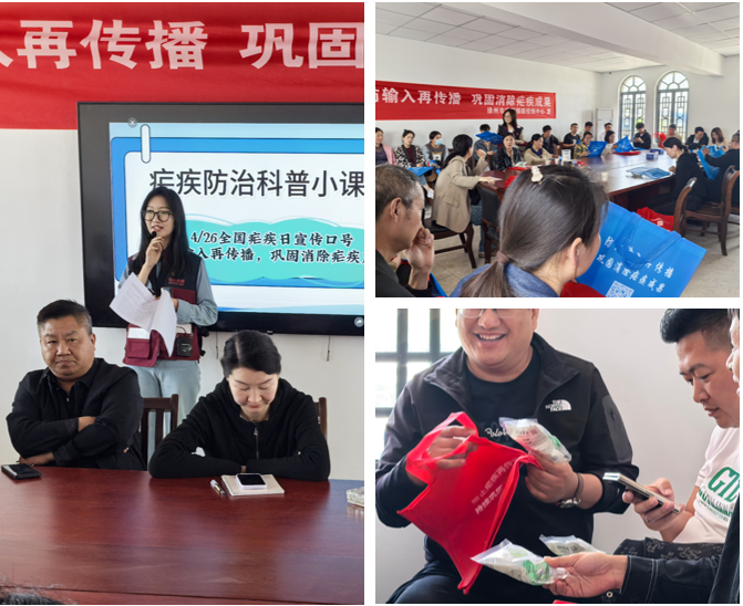 4月25日,市疾控中心、市第七人民医院(徐州市传染病医院)联合铜山区疾控中心赴铜山区联合开展宣传。在三堡镇胜阳村卫生室广场,对群众关注的防蚊灭蚊技巧、症状自查方法等问题进行解答,引导公众树立科学防治观念。