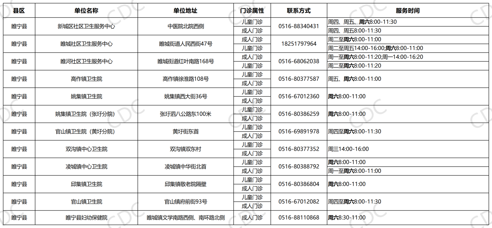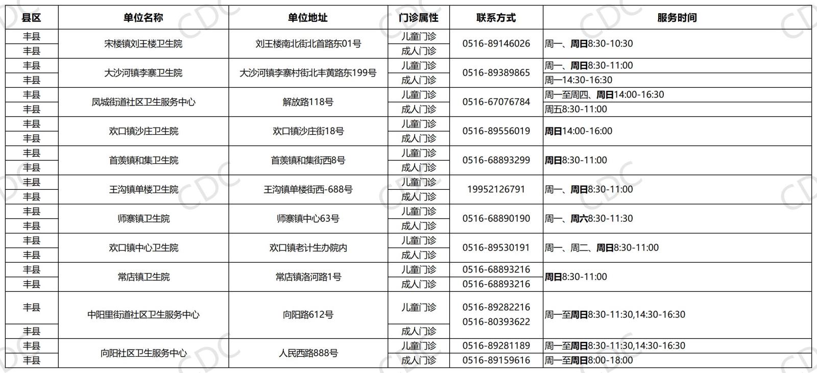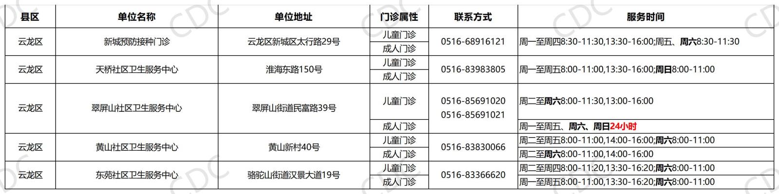 我们已汇总全市参与本次活动的接种门诊信息,具体门诊名称、地址、联系电话、服务时间及供应疫苗品牌详见下图。